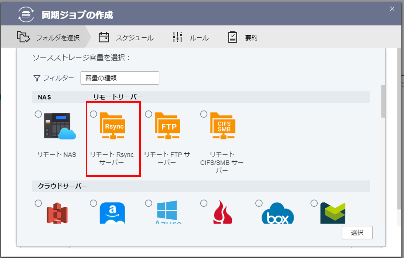 従来では、『アクティブ同期ジョブ』を選択しても、リモートRsyncサーバーがサポートされておりませんでしたが、サポートされるようになりました。