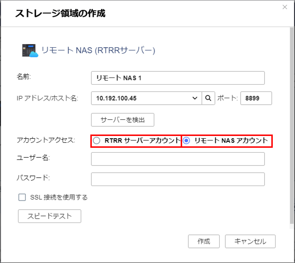 従来では、『RTRRサーバー』ではアカウント設定が必要でしたが、ローカルNASアカウントで使用できるようになりました。