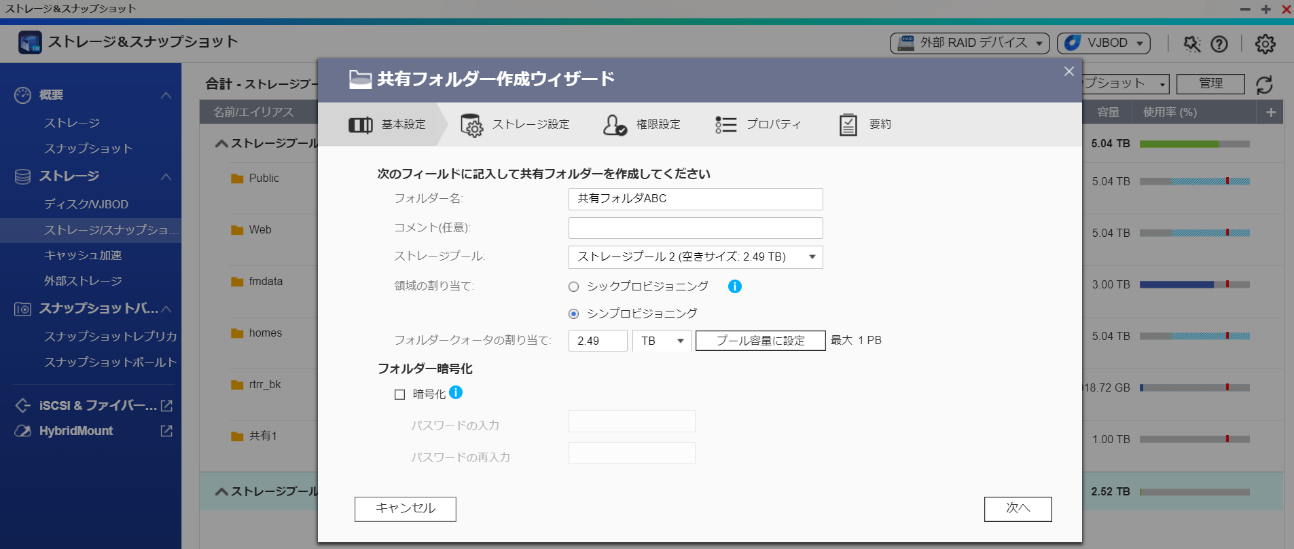 hero共有フォルダ作成画面