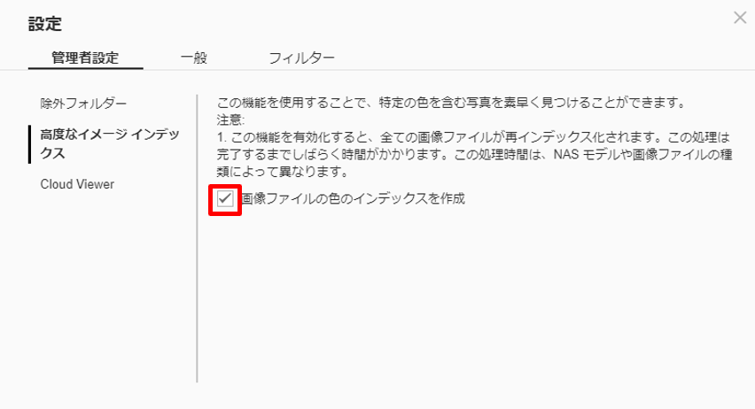 Qsirch 設定 >高度なイメージインデックス