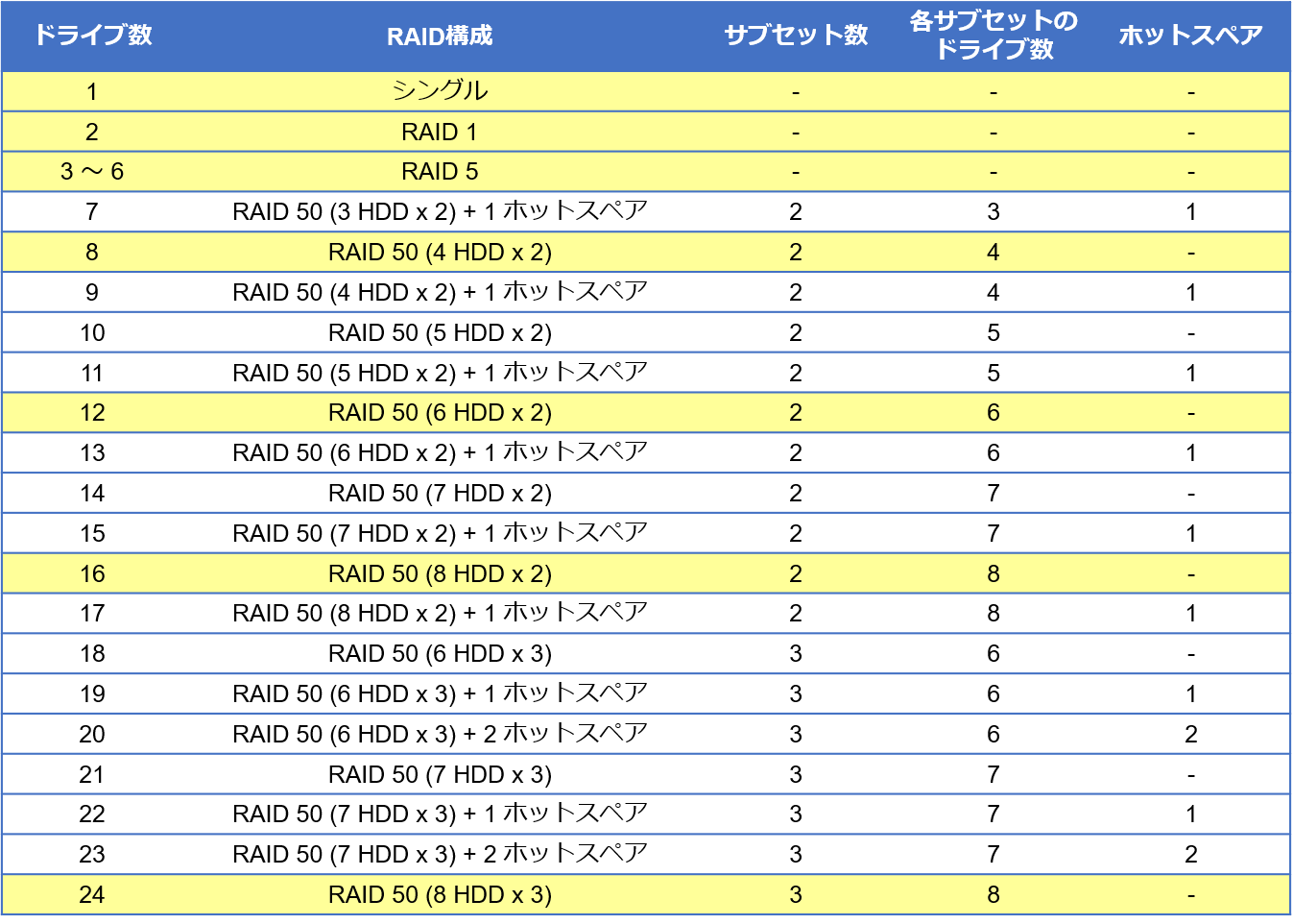 フォースメディアでは、ドライブベイ数に応じて以下の設定としておりますが、ご要望に応じて変更可能です。
