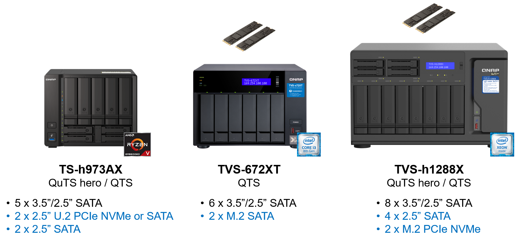 QNAPでは、SSD搭載を前提としているモデル(HDDとSSDのハイブリッド構成)が、非常に豊富にございます。