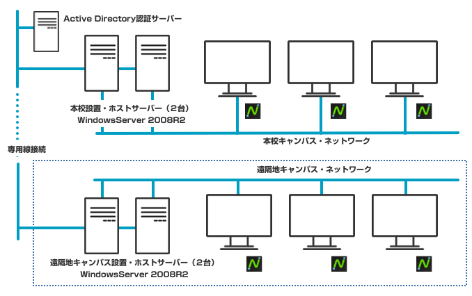 現在位置: ホーム / NComputing / Images / 遠隔地キャンパスとのシステム構成