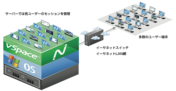 現在位置: ホーム / NComputing / Images / ゼロクライアントでの仮想化デスクトップの仕組み