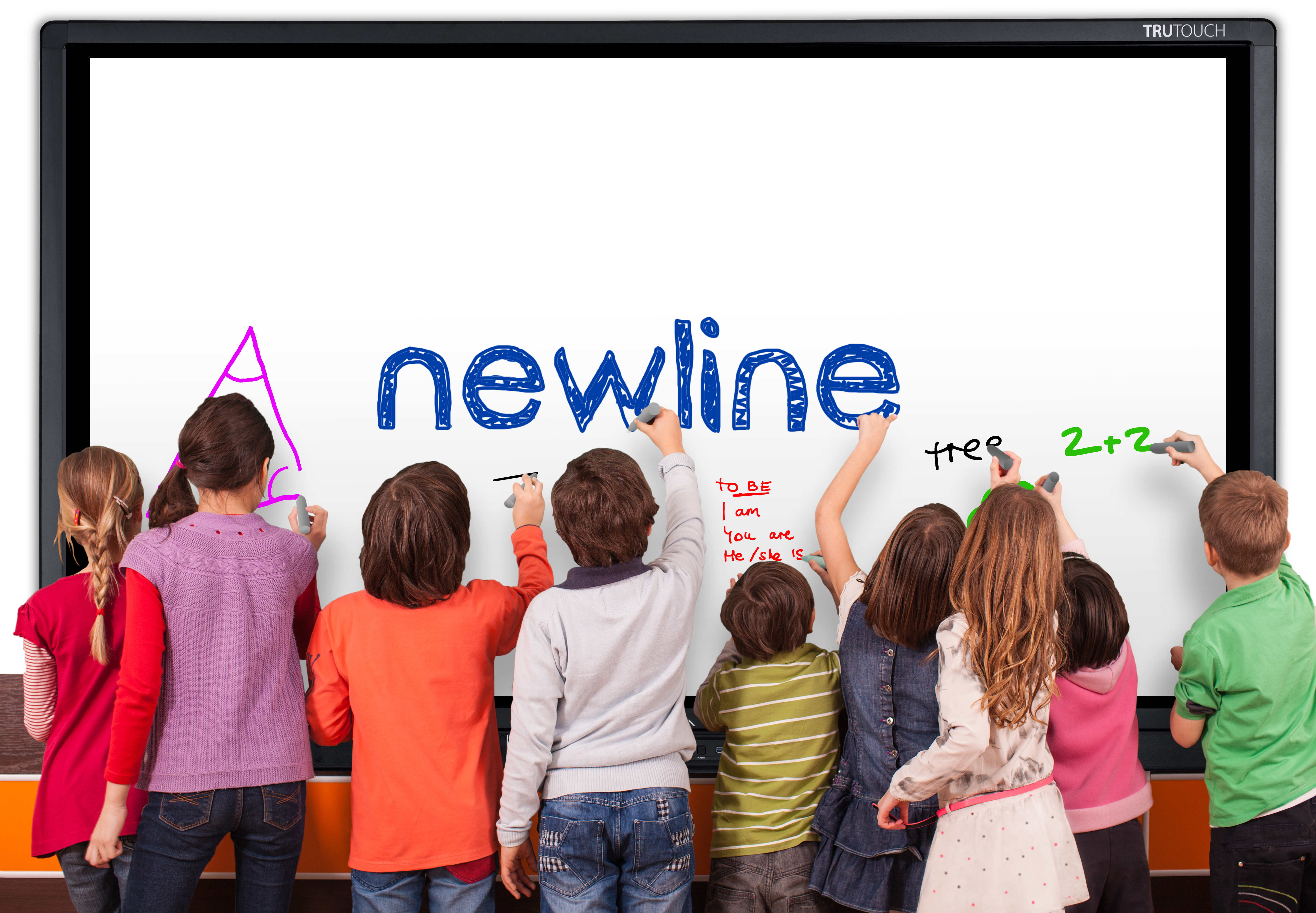 Newline(ニューライン)の電子黒板「QAシリーズ」「RSシリーズ」は複数の生徒が一度に画面に書き込むことができるマルチタッチ機能を備えています。画面に表示された画像や教材の上に生徒自らの考えや回答を書き込み、発表しクラスで議論するといったアクティブな授業を行うこともできます。