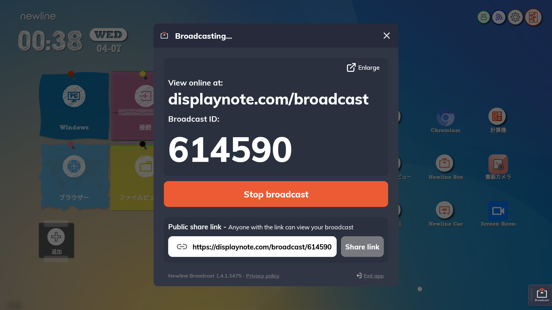 タブレットの画面をミラーリング
