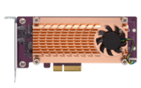 QM2シリーズ PCIeカードを使えば、M.2 SSDや10GbE RJ-45ポートをQNAP NASに追加できます。用途に応じてM.2 SSDスロットだけを追加するカードと、1枚で M.2 SSDスロットと10GbE接続の両方を追加できるタイプを選択できます。いずれも、簡単、コンパクトかつ低価格のアップグレードを実現します。