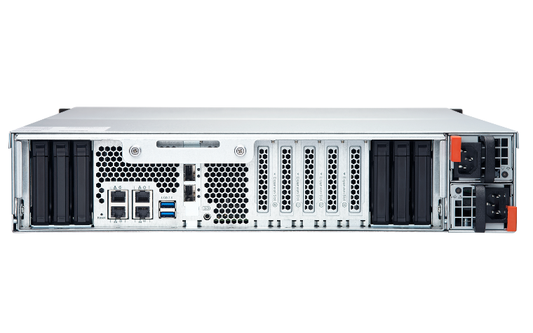 TES-1885UでQESオペレーティングシステムを実行すると、SnapSyncを利用したデュアルコントローラーEnterpriseZFS NASに最適なバックアップストレージとなります。Enterprise ZFS NASが突然停止した場合、TES-1885Uはバックアップされているすべてのデータをローカルですぐに復元できます。操作やサービスを引き継ぎ、アップタイムを最大化します。リモートQTSNAS/rsyncサーバーから復旧後のEnterpriseZFS NASにデータを戻すために必要なダウンタイムが回避されるので、最適な復旧時間目標を達成するためのバックアップNASとして、TES-1885UとEnterprise ZFS NASは最高の組み合わせとなります。