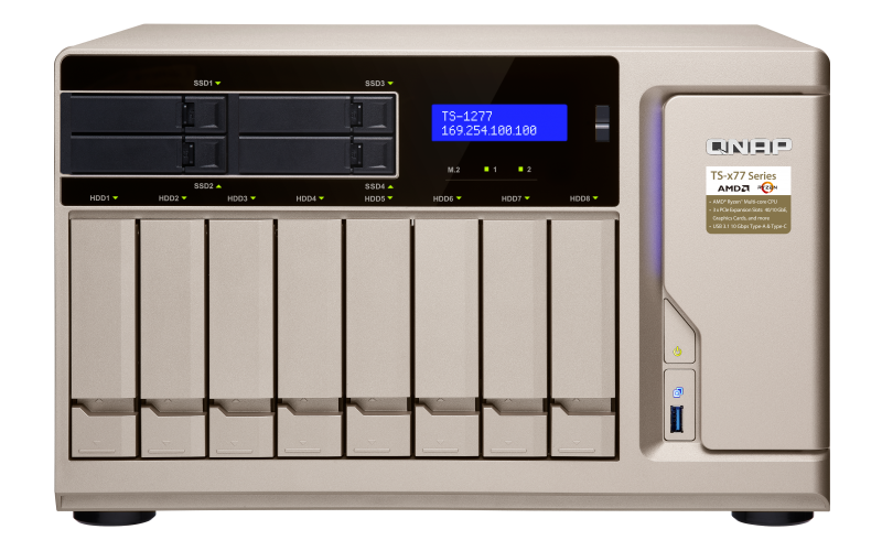 AMDの新しい14nm Ryzen™を搭載したTS-1277は、8コア/16スレッドネイティブプロセッシングおよび最大3.7GHzのTurbo Coreテクノロジーにより、ビデオおよび仮想マシンのより優れたパフォーマンスを引き出すことのできるビジネス向けハイエンドデスクトップNASです。統合された最先端のハードウェアとマルチタスクソフトウェアにより、リソースを消費するアプリケーションおよびタスクを処理することができます。