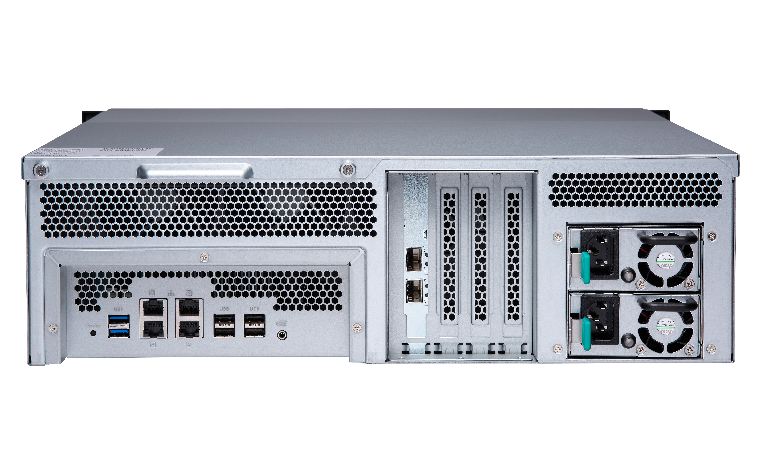 TS-1673U-RPには、AMD RシリーズRX-421NDクアッドコア 2.1GHz CPU (Turbo Core 最大3.4 GHz)、デュアルチャンネル 16GB/64GB DDR4 RAM (最大64GBまでアップグレード可能)、4つの1GbEポート、プレインストール済みデュアルポート10GbEネットワークが搭載されています。デュアル10GbE構成を搭載しているTS-1673U-RPは、低消費電力で超高速マルチタスクを処理するために最大1531 MB/秒のスループットを発揮することができます。また、AES-NIによりアクセラレーション暗号化エンジンでは、同クラスにおいて比類ない暗号化パフォーマンスを実現し (最大1305 MB/秒、AES 256ビットフルNAS 暗号化)、システムパフォーマンス、セキュリティをブーストし、NASに保存されているビジネス上の極秘データの機密性を確立しています。