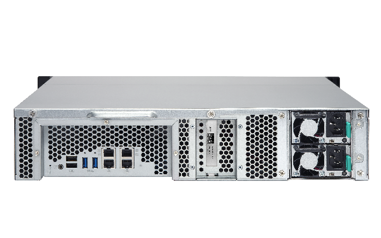 TS-863U-RPは高性能AMDクアッドコアCPUを備えた強力なネットワークストレージです。標準で10GbEをサポートし、AES-NIハードウェアによる暗号化エンジンにより暗号化ファイルの転送パフォーマンスを毎秒800MB以上まで高速化します。最新のQTSオペレーティングシステムでは、様々なオールインワンサーバー機能だけでなく、同じデバイス上で仮想化環境を可能にするVirtualization Stationなども利用できます。TS-863U-RPはファイル共有、バックアップ、プライベートクラウド、仮想化用のストレージとして導入し、10GbEネットワークで将来的にも使えるITインフラストラクチャの求める中小企業向にとって最適なソリューションとなります。