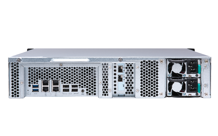 TS-873U-RPには、AMD RシリーズRX-421NDクアッドコア 2.1GHz CPU (Turbo Core 最大3.4 GHz)、デュアルチャンネル 8GB/16GB/64GB DDR4 RAM (最大64GBまでアップグレード可能)、4つの1GbEポート、プレインストール済みデュアルポート10GbEネットワークが搭載されています。デュアル10GbE構成を搭載しているTS-873U-RPは、低消費電力で超高速マルチタスクを処理するために最大1567 MB/秒のスループットを発揮することができます。また、AES-NIによりアクセラレーション暗号化エンジンでは、同クラスにおいて比類ない暗号化パフォーマンスを実現し (最大1315 MB/秒、AES 256ビットフルNAS 暗号化)、システムパフォーマンス、セキュリティをブーストし、NASに保存されているビジネス上の極秘データの機密性を確立しています。
