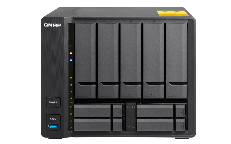 TS-932Xのサイズには驚くことでしょう。通常の4ベイ/6ベイのNASと同じような外観の9ベイNASです。ストレージ容量とパフォーマンスを両立したTS-932Xは、中小企業や小規模オフィスにとって最適なモデルです。シンプルなLEDインジケータ、アルミ ヘアライン仕上げのフロントパネル、NASのフットプリントを最適化する独自のドライブベイ レイアウトなど、細部までこだわって設計されています。