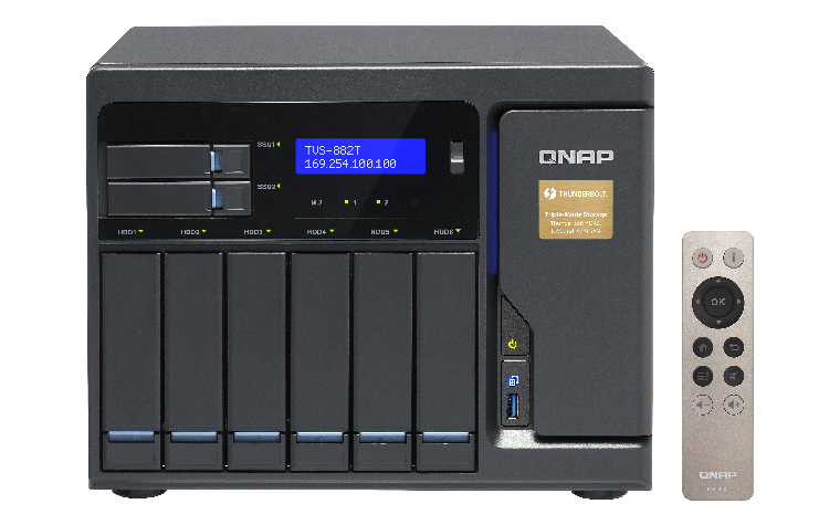 TVS-882Tは、先進的な高性能Thunderbolt™ 2 Turbo vNASで第7世代 Intel® 14 nm マルチコアプロセッサーを採用し、Thunderbolt™ DAS/NAS/iSCSI SANトリプルソリューションを提供します。