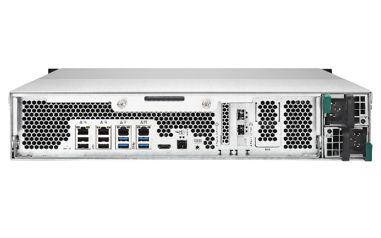 TVS-EC1280U-SAS-RP R2は、12Gbps SASに対応し、高性能 SAS SSD/HDD、大容量 SATA HDDのストレージを1つのストレージに混在できるユニファイド・ストレージです。Qtierテクノロジーで自動階層化を行い、ストレージ性能を自動的に最適化します。10GbE 2ポート (SFP+) を標準搭載するほか40GbEにも対応し、大規模なビジネスユーザーのニーズに応えます。
