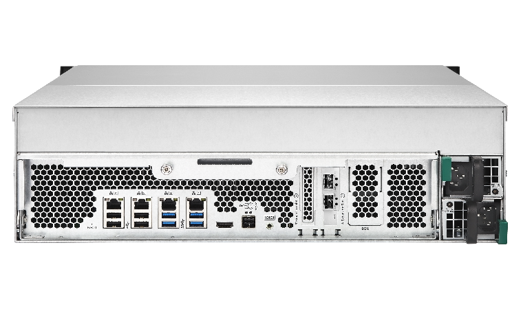 TVS-EC1680U-SAS-RP R2は、12Gbps SASに対応し、高性能 SAS SSD/HDD、大容量 SATA HDDのストレージを1つのストレージに混在できるユニファイド・ストレージです。Qtierテクノロジーで自動階層化を行い、ストレージ性能を自動的に最適化します。10GbE 2ポート (SFP+) を標準搭載するほか40GbEにも対応し、大規模なビジネスユーザーのニーズに応えます。