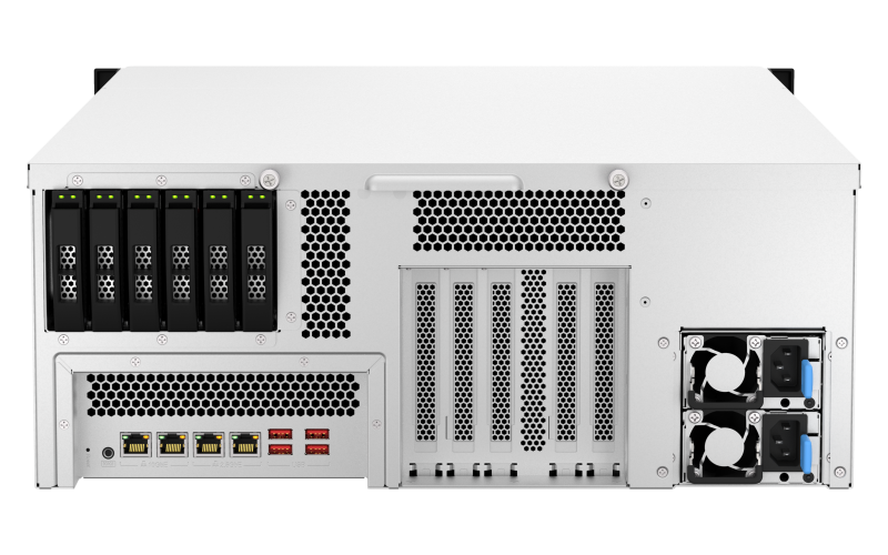 TS-H3087XU-RPは、2つの2.5GbE RJ45ポート (1G/100Mと下位互換)およびデュアルポート 10GBASE-T 接続性能を備えています。ポートトランキングおよびフェイルオーバー対応により、仮想化、大型ファイル転送、高速バックアップ/復元、およびリアルタイムアプリケーションを含む、重要アプリケーションにおいて、帯域幅および信頼性が向上します。また、QNAPはマネージドおよびアンマネージド10GbE/2.5GbE スイッチの各種オプションを提供し、予算を超えずに高速で安全かつスケーラブルなネットワーク環境を導入する企業を支援します。