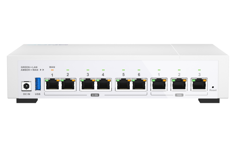 QHORA-322は3つの10GbEポート (10G/ 5G/ 2.5G/ 1G/ 100Mと互換)および6つの2.5GbEポート (2.5G/ 1G/ 100Mと互換)を装備しており、超高速の有線ネットワーク性能を実現します。