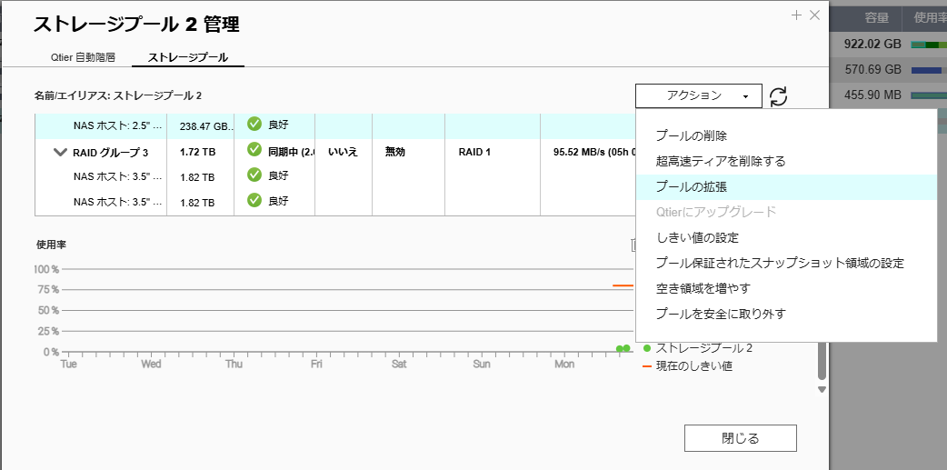 先にSSDのみでRAIDを構築後、HDD RAIDを追加して拡張すると