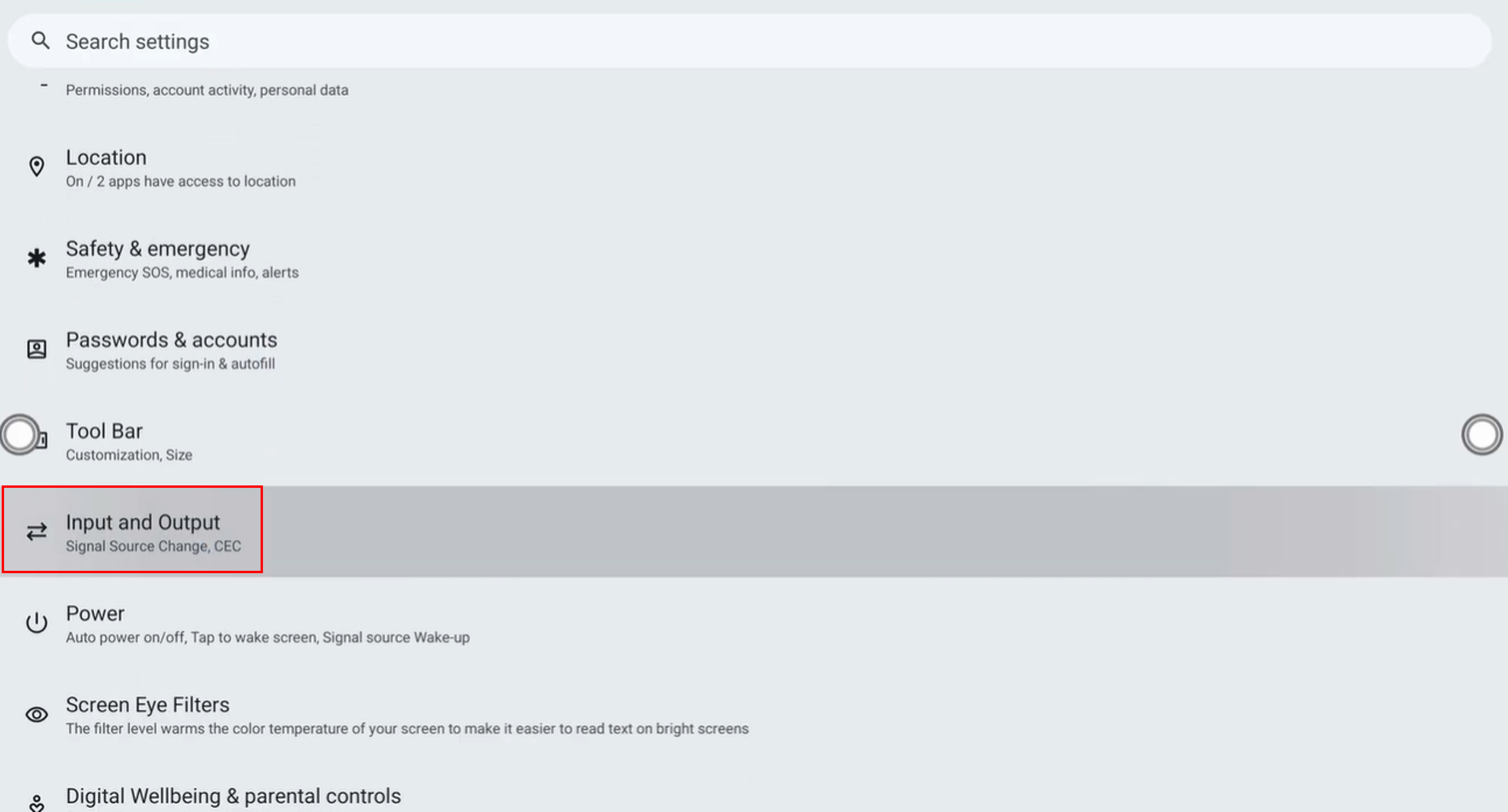 ③「入力と出力」を選択する