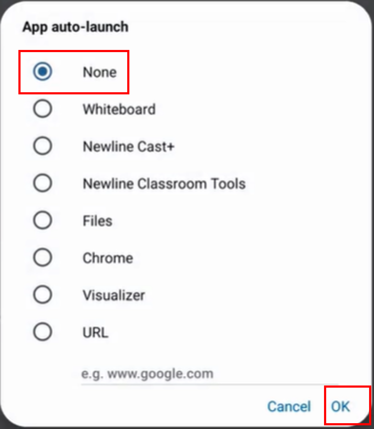 Newline QPシリーズの最新ファームウェアでは起動時にNewline Cast⁺が起動します。