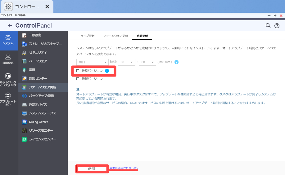 NASのファームウェア自動更新について(ファームウェア4.5.×以降)