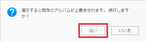 既存のアルバムが存在する場合に「既存のアルバムを上書きする」
