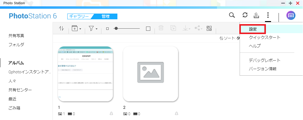 2.Photo Station起動後の画面から下図赤枠内の箇所をクリックする